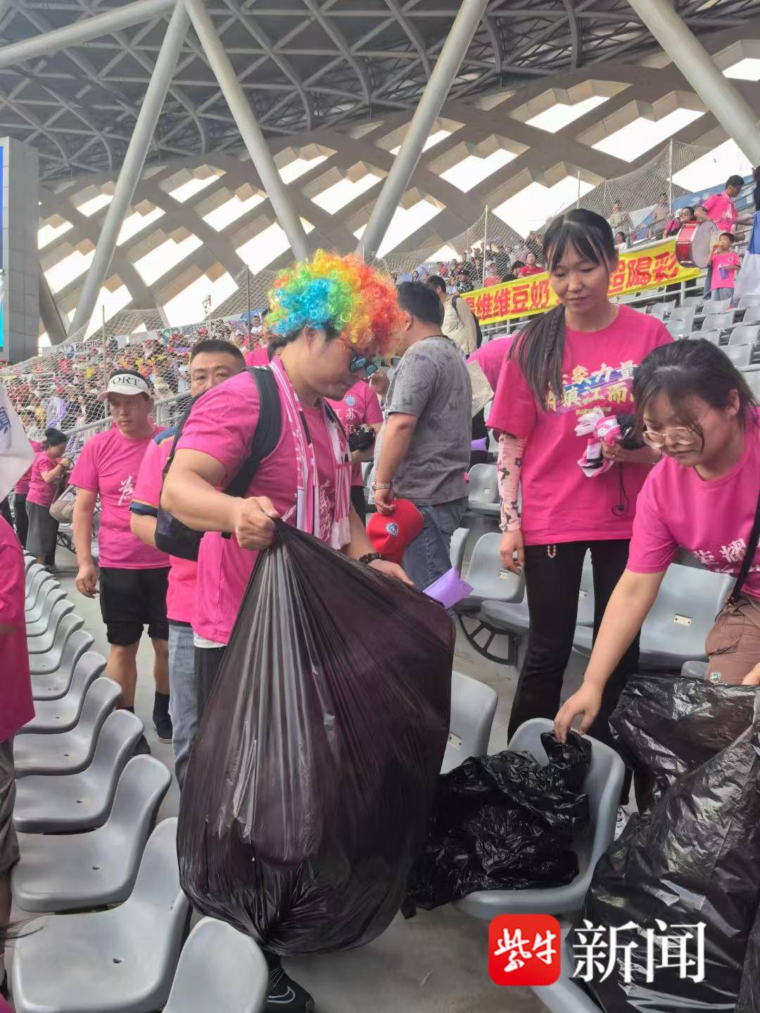当观众纷纷离场时,令人暖心的一幕出现了。众多镇江球迷自发拿起垃圾袋等工具,开始清理看台上遗留的垃圾。球迷段拥军表示:“我们享受了精彩的比赛,也应该为维护赛场环境出一份力。文明观赛不只是口号,更要落实在行动上,希望用我们的行动为城市文明加分。”